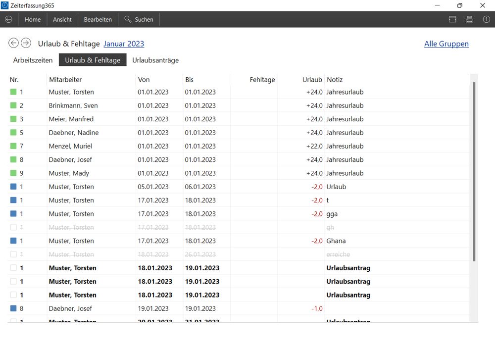 Zusätzlich werden auf der dritten Seite alle aktuellen Urlaubsanträge angezeigt.