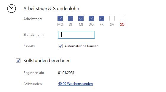 Optional kann bei jedem Zeiteintrag auch gleichzeitig der Stundenlohn erfasst werden, die Zeiterfassung errechnet dann automatisch den Tages- und Gesamtmonatslohn des Mitarbeiters